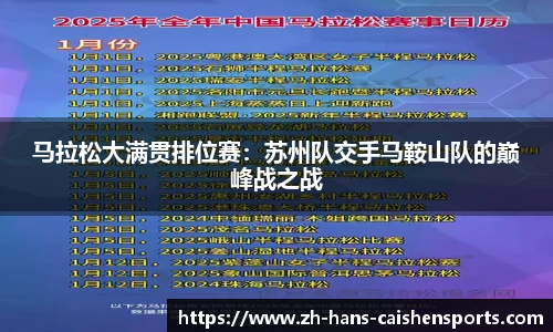 马拉松大满贯排位赛:苏州队交手马鞍山队的巅峰战之战